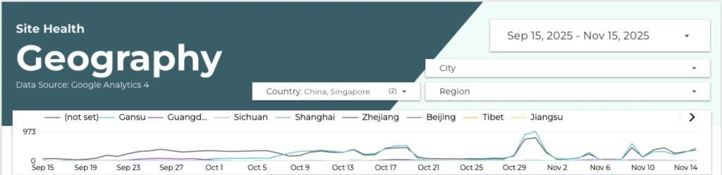 - Traffic was coming from China, Singapore, and “(not set)” locations