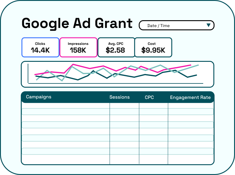 Google offers $10K in Ad Grants to 501c3 nonprofits, but they can be tricky to apply for, setup and maintain. We can help with all of that to make sure you’re getting quality traffic through your ad grant dollars.